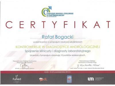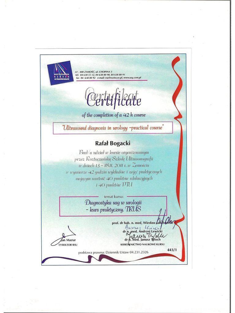 Certyfikaty urologa dr n.Med. Rafała bogackiego